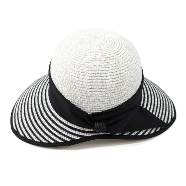 Black Ginger 57cm Black/White Stripey Open Back Foldable Hat