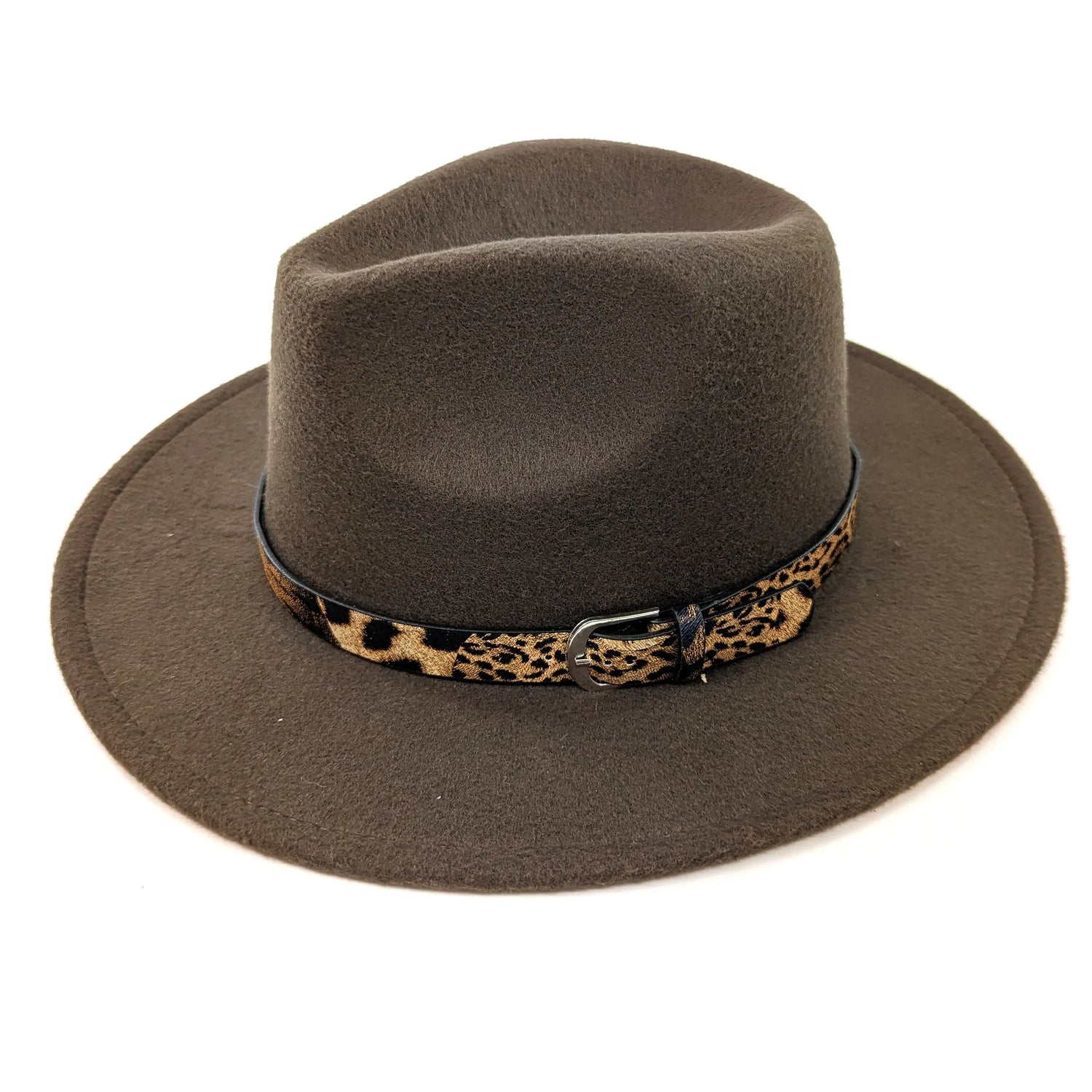 Step into the colder months with style and sophistication with the Animal Print Band Fedora Hat in Chocolate Brown. This elegant fedora combines a classic design with a bold twist, perfect for completing your winter wardrobe.