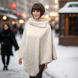 A beautiful and cosy, faux fur poncho. Has a gorgeous open sided roll neck collar for extra winter warmth. The perfect one size fits all winter fashion accessory.