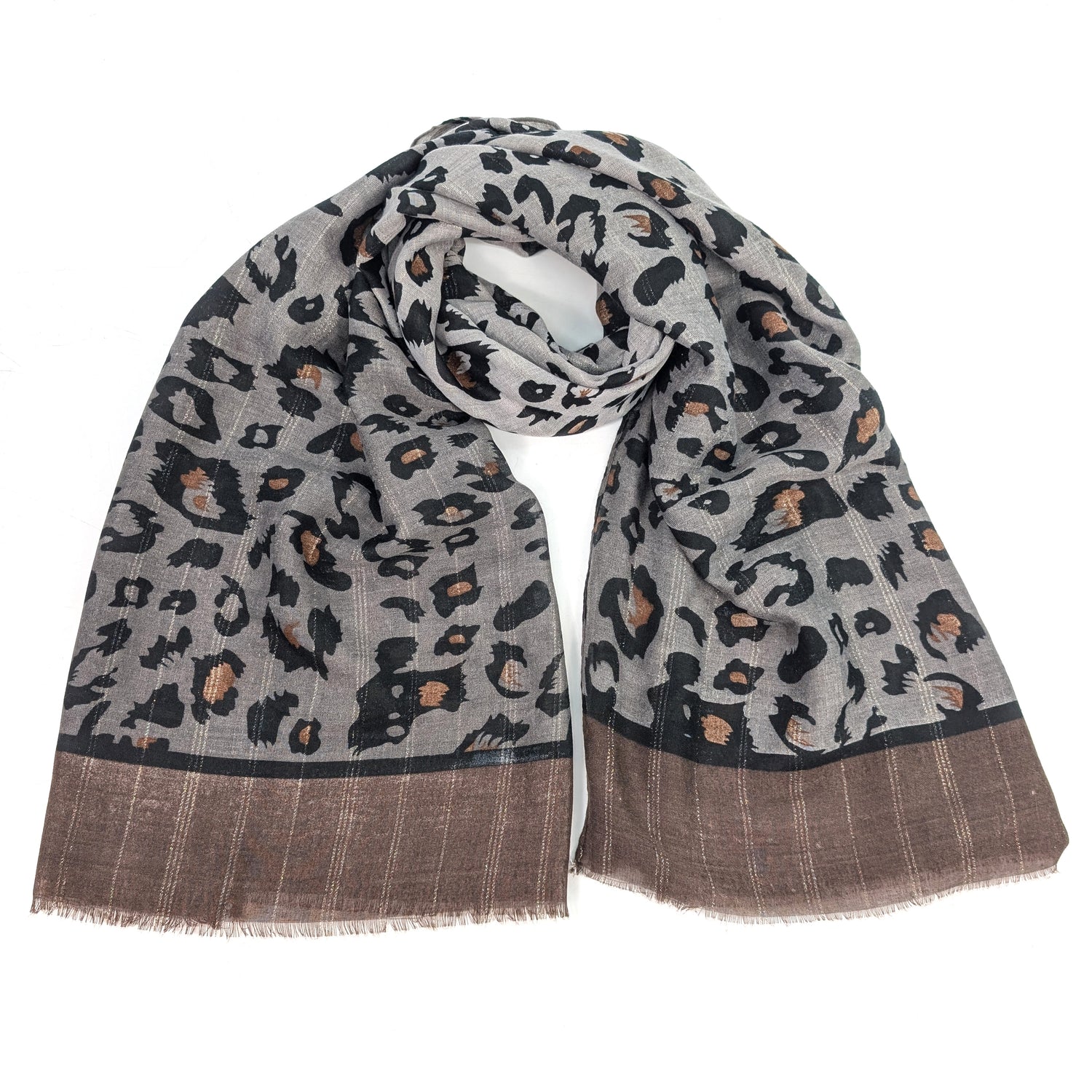 Black Ginger Prapat Glittery Animal Print Scarf – Chocolate