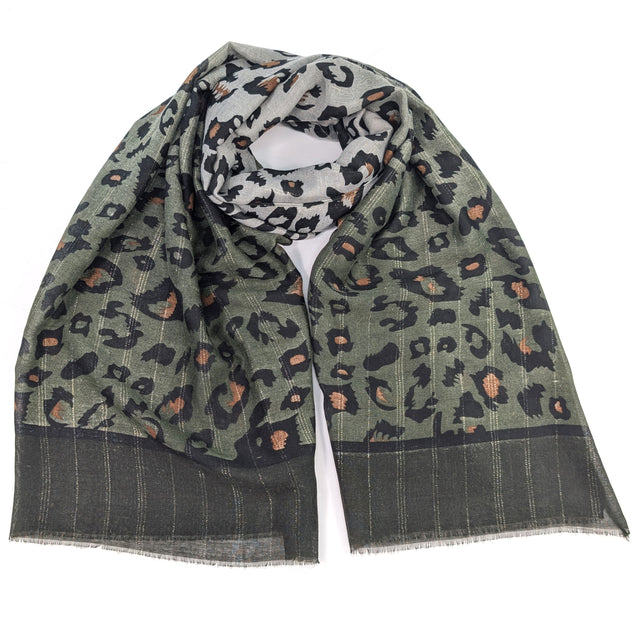 Black Ginger Prapat Glittery Animal Print Scarf – Green