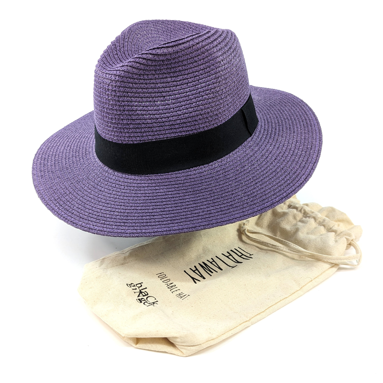 Black Ginger Regal Purple Panama Foldable Hat with Black Ribbon
