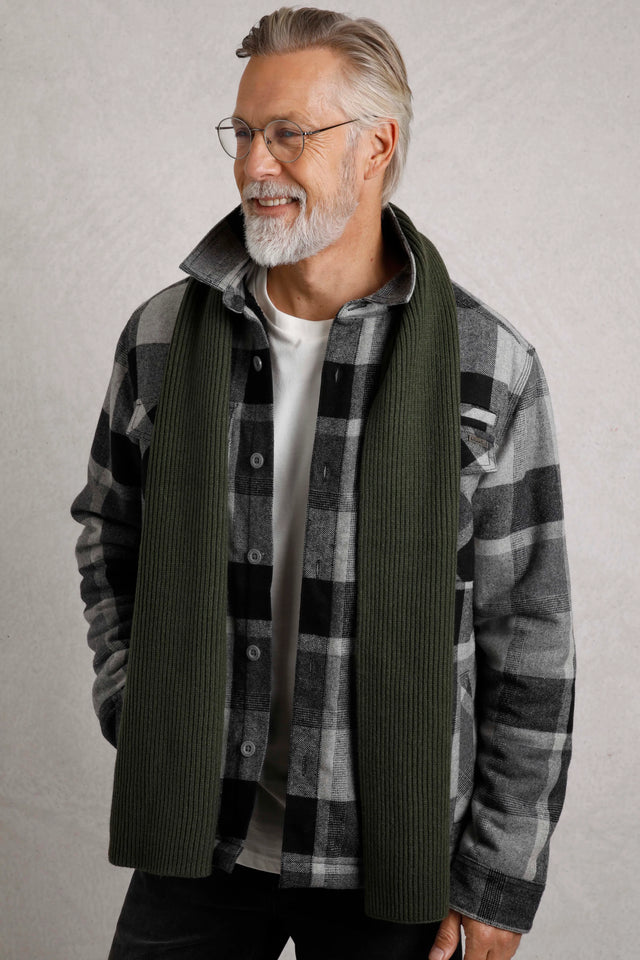The Stornoway Ribbed Scarf is your classic men's scarf design. Simple thanks to its block colour, a great length and width to wear loose or wrapped around. The ribbed texture gives it a stretchy nature, and it is finished with subtle PU branding. We have three easy to style colours available this season.