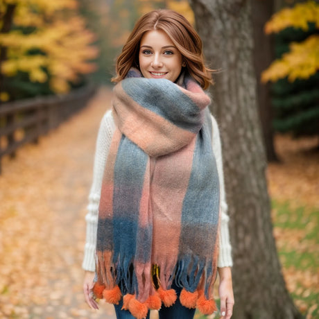 £1699Unit price /UnavailableBlack Ginger 210cm Peach/Blue Skala Pom Pom Extra Thick Scarf - 736-442