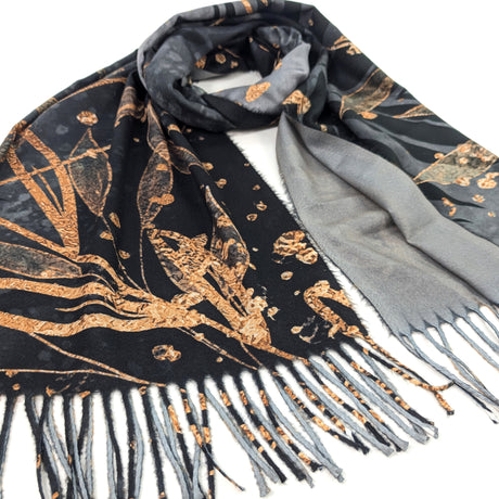 £1699Unit price /UnavailableLow stock (3 units)Black Ginger Kursi Golden Leaf Pashmina Scarf - Teal