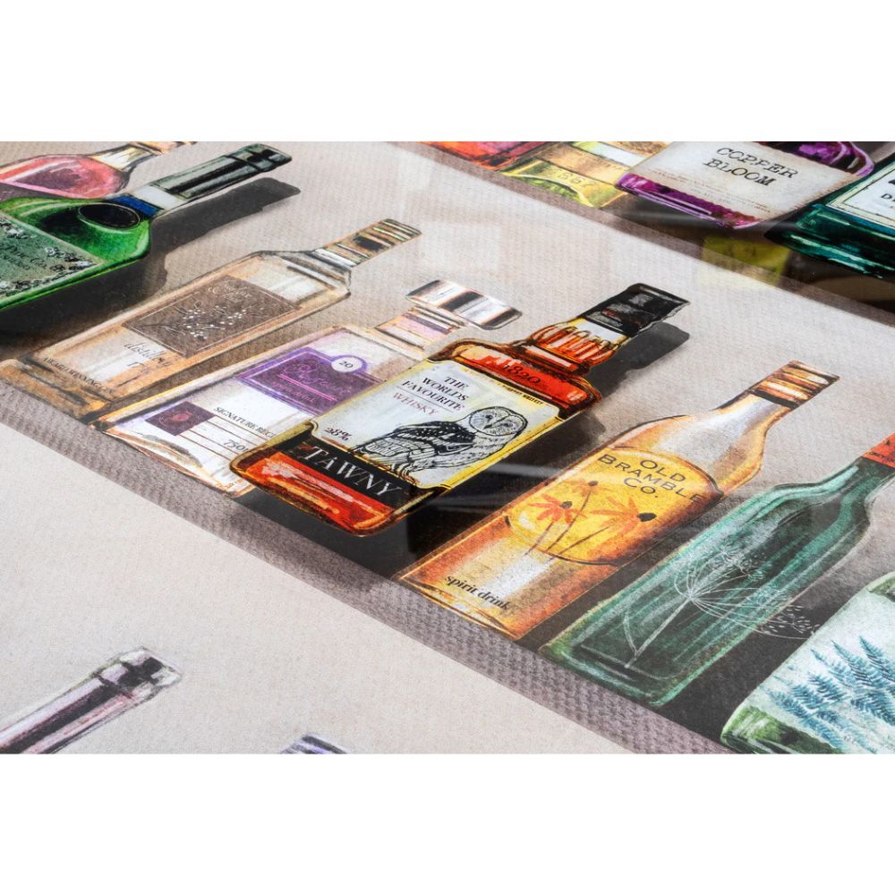 Finish: Artwork sits behind the glass, with bottles printed directly on the surface for added depth