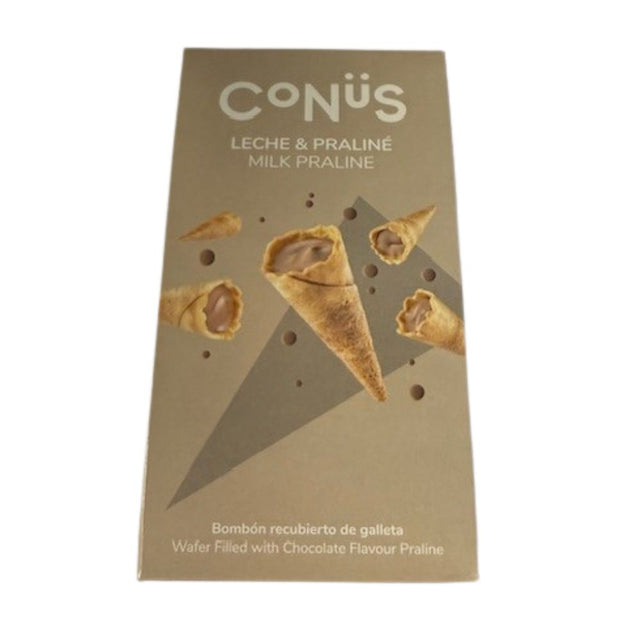 Bon Bon’s Leche & Praline Conus are delightful wafer cones filled with creamy chocolate-flavoured praline, offering a perfectly balanced texture between crisp wafer and velvety filling. Made to satisfy those who enjoy premium confectionery, each bite delivers the rich, nutty taste of praline combined with the light crunch of a wafer shell.