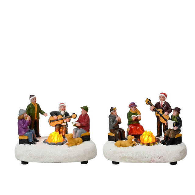 The Lumineo 12cm LED Christmas Village Campfire Scene offers a warm and inviting touch to your indoor Christmas village display, featuring glowing LED lights that mimic the flicker of a campfire.