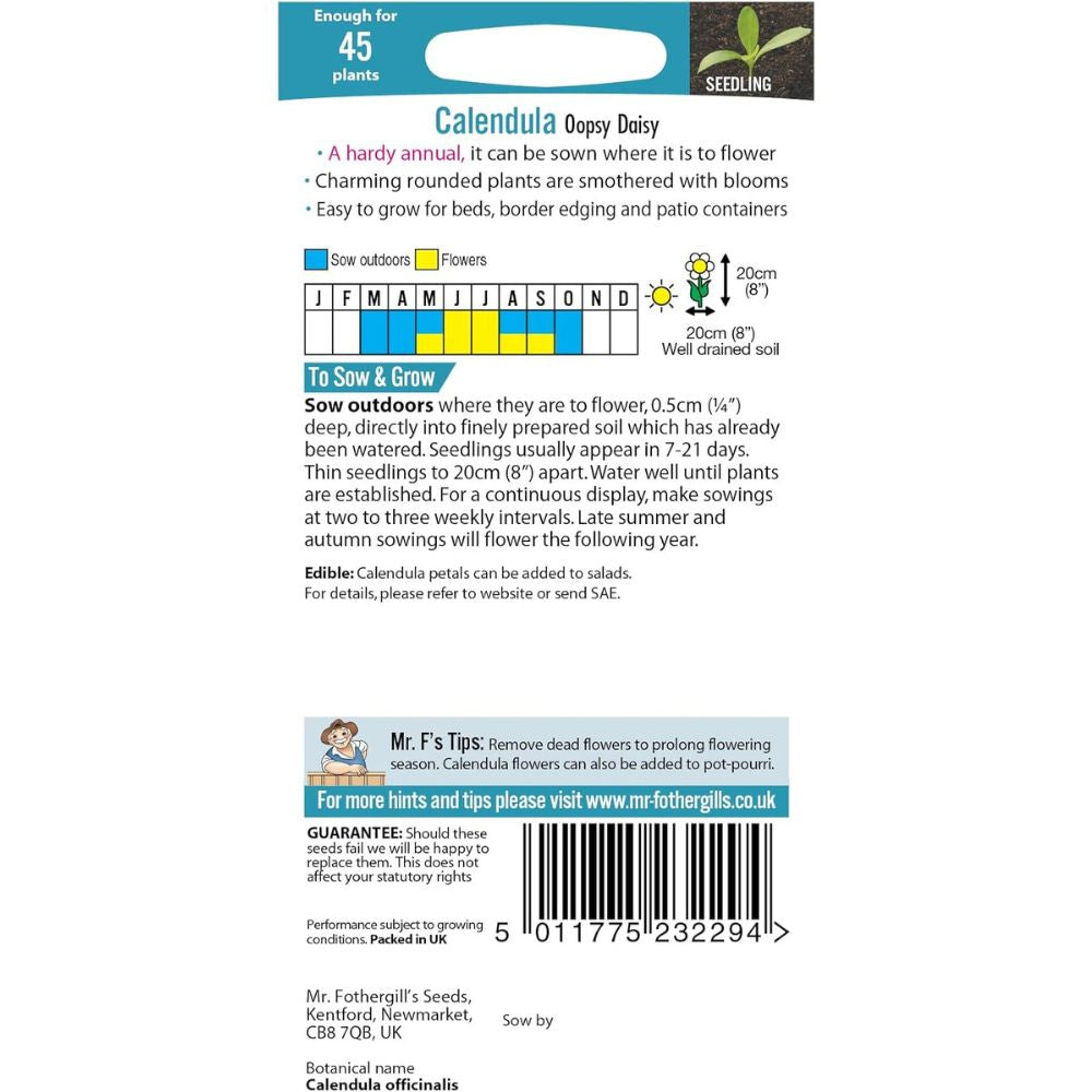 Compact, colourful and wonderfully easy to grow, Calendula Oopsy Daisy is the perfect choice for gardeners seeking a reliable splash of summer cheer. Add it to your planting scheme for weeks of joyful blooms.