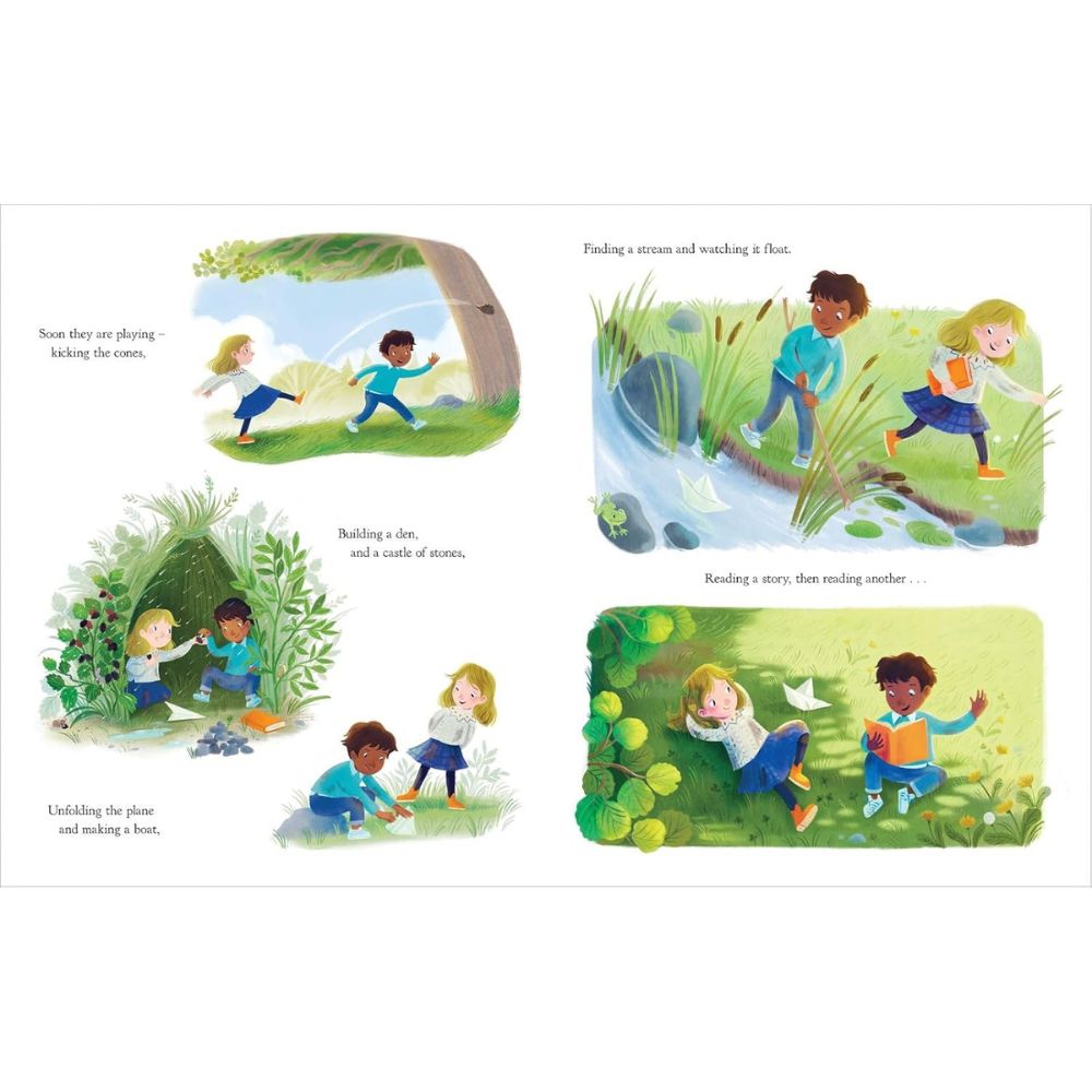 When James, with his book, meets Ginger, flying her paper plane, a friendship blossoms under a tall tree. But when they are separated, their connection continues through the paper that links their lives — showing how something as simple as paper can hold meaning, memory, and magic.