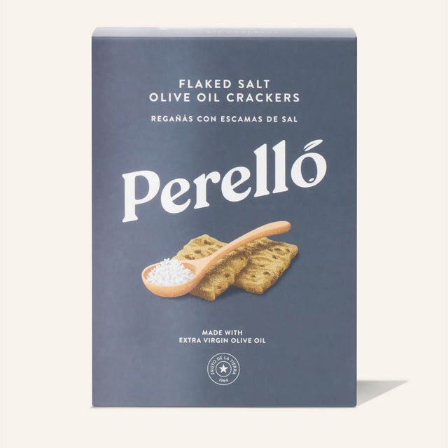 Perelló Flaked Salt Olive Oil Crackers (150g) — authentic, hand-crafted Spanish crackers that bring a touch of Mediterranean flavour and finesse to every occasion.