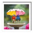 The Tracks Publishing Penblwydd Hapus Birds with Umbrella Blank Birthday Card is a joyful and heartfelt choice for celebrating birthdays in Welsh. The charming photograph depicts two small, colourful birds perched together beneath a shared umbrella on a rainy day — a delightful image symbolising friendship, warmth, and togetherness.