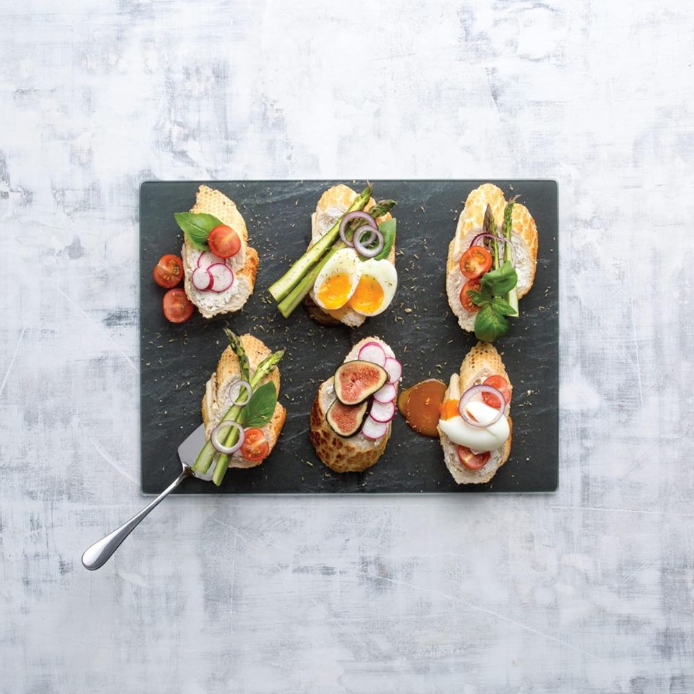 The Typhoon Elements Slate Work Surface Protector is the perfect blend of style and function for the modern kitchen. Crafted from toughened glass with a striking slate-effect finish, it provides a heat-resistant and hygienic surface for all your culinary tasks. Whether you’re chopping ingredients, serving appetisers, or placing hot dishes straight from the oven, this board helps protect your countertops from damage and stains.