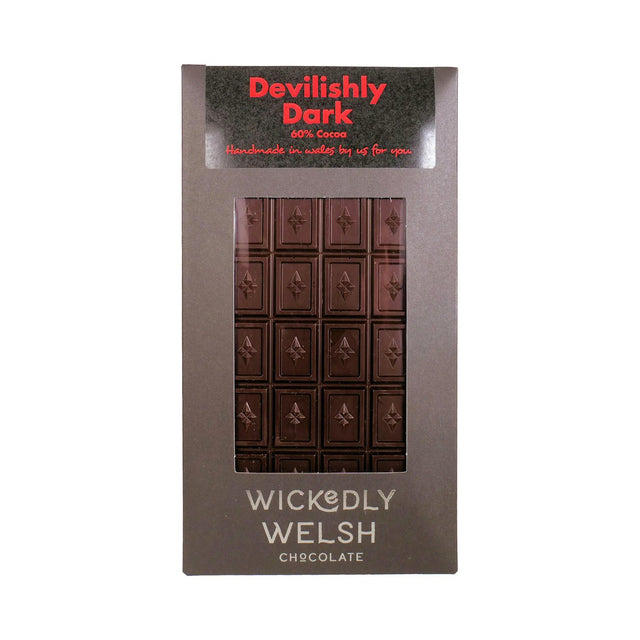 Indulge in the deliciousness of Wickedly Welsh's Devilishly Dark Chocolate Bar, crafted with 60% cocoa solids.
