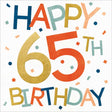 • Features the message: “Happy 65th Birthday” in bright, multicoloured lettering