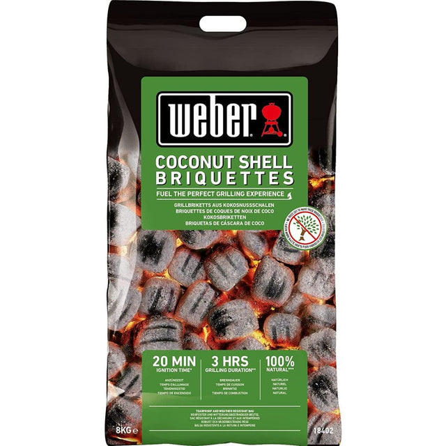 Weber 8kg Coconut Shell Briquettes are a sustainable and responsible choice for your barbecue, and a perfect alternative to traditional wood briquettes. They are also a great choice for those who are looking for a more eco-friendly fuel option.