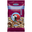 Splendid food for larger parrots, contains 25 different ingredients, is 57% fruit and nut and includes Rose Hips, soft shell Almonds, Apricots, Coconut, Brazil Nuts, Walnuts, Dates. Plenty of taste andvariety, and with food pieces the right size for these birds. Class. And very low in both white and dark (only 5%) Sunflower.