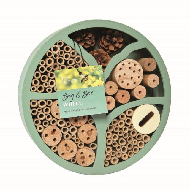 Perfect for eco-conscious gardeners and wildlife enthusiasts, the Tom Chambers 26cm Bug & Bee Wheel Hotel supports pollination and natural pest control — helping your flowers, fruits, and vegetables flourish naturally.
