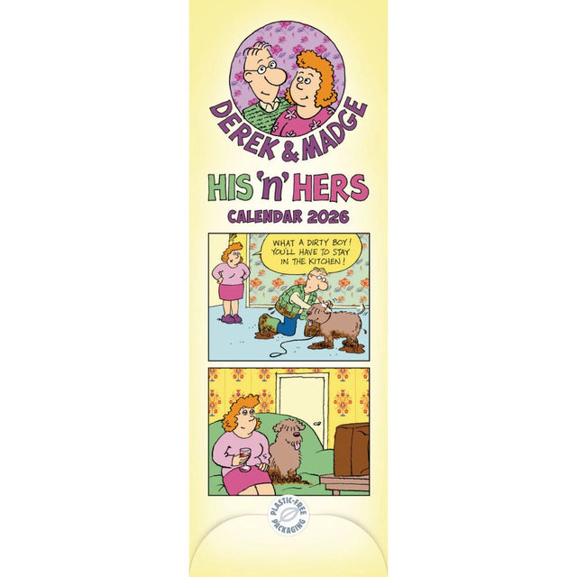 The Otter House Derek & Madge His n Hers Planner Slim Calendar 2026 is a popular slim calendar designed to fit neatly into narrow spaces. Featuring a new humorous His n Hers illustration each month, this planner offers a practical and entertaining way to keep organised.