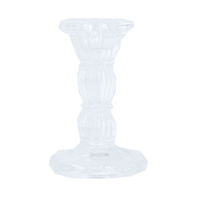 Gisela Graham 10cm Clear Moulded Glass Candlestick Holder