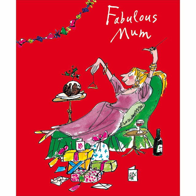 Celebrate your fabulous mum this Christmas with the Woodmansterne Mum Reclining with Presents Christmas Card, a vibrant and humorous design that perfectly captures the joy and indulgence of the festive season.
