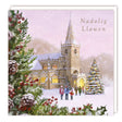 The Going to Church Christmas Charity Cards by Tracks Publishing capture the traditional beauty and peaceful charm of Christmas in Wales. The detailed artwork depicts a warmly lit church surrounded by snow-covered trees and festive decorations, perfectly evoking the calm and joy of the holiday season. Each card includes the message Merry Christmas and a Happy New Year in English, with “Nadolig Llawen” featured prominently on the front for a distinctly Welsh touch.