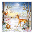 The Woodland Friends Christmas Charity Cards from Tracks Publishing are a delightful way to send your Christmas wishes while supporting a meaningful cause. The elegant artwork features a serene winter woodland scene, where forest animals gather under the moonlight surrounded by frosted trees and festive berries. The foil detailing enhances the illustration, bringing a soft sparkle that complements the peaceful design.