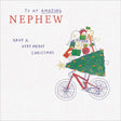 Woodmansterne Nephew - Tree on Bike Christmas Card – Fun Festive Greeting for an Amazing Nephew