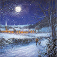 The Woodmansterne Snowy Dog Walk Christmas Card beautifully captures the calm and charm of a snowy Christmas evening. The scene depicts a figure and their dog strolling along a frosted path, with a glowing moon illuminating a picturesque village in the distance. The artwork evokes feelings of nostalgia, peace, and togetherness — everything that makes the Christmas season special.