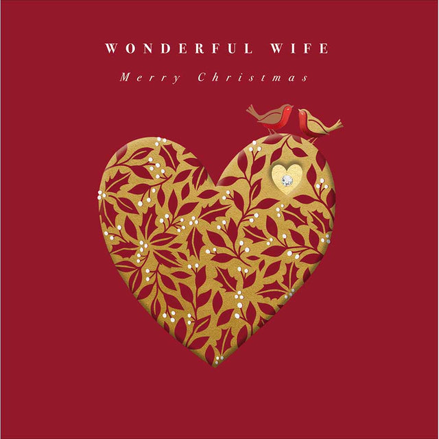 Celebrate the magic of Christmas and the love you share with this Woodmansterne Wife Golden Heart Christmas Card. Designed with stunning festive illustrations, delicate foil details, and a thoughtful message, this premium greeting card is a wonderful way to remind your wife how special she is.