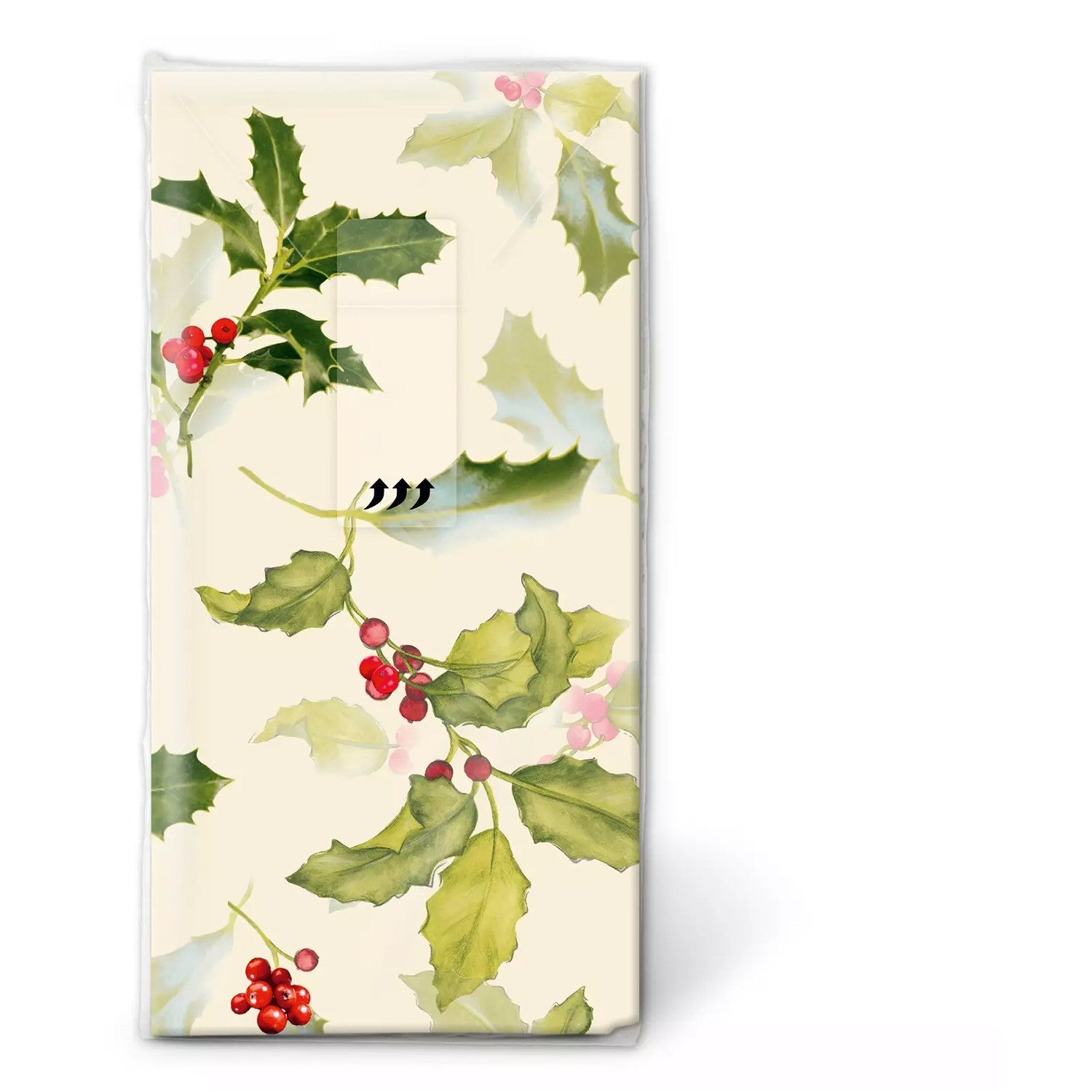 Pack of 10 handkerchiefs featuring classic holly (ilex) designs