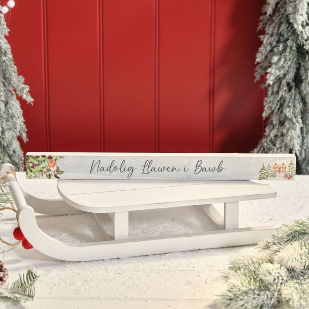 The Richard Langs 42cm Ceramic Block is a beautiful way to share festive greetings with family and guests. Crafted in white ceramic with raised cottages at either end, the design is finished with red, green, and gold accents that capture the warmth of the season. The Welsh inscription “Nadolig Llawen i Bawb” adds cultural charm, making it an ideal decoration for households in Wales or those who wish to honour Welsh heritage. At 42cm wide, it’s a substantial piece that stands out as part of your festive display, whether styled on a mantel, console table, or windowsill.