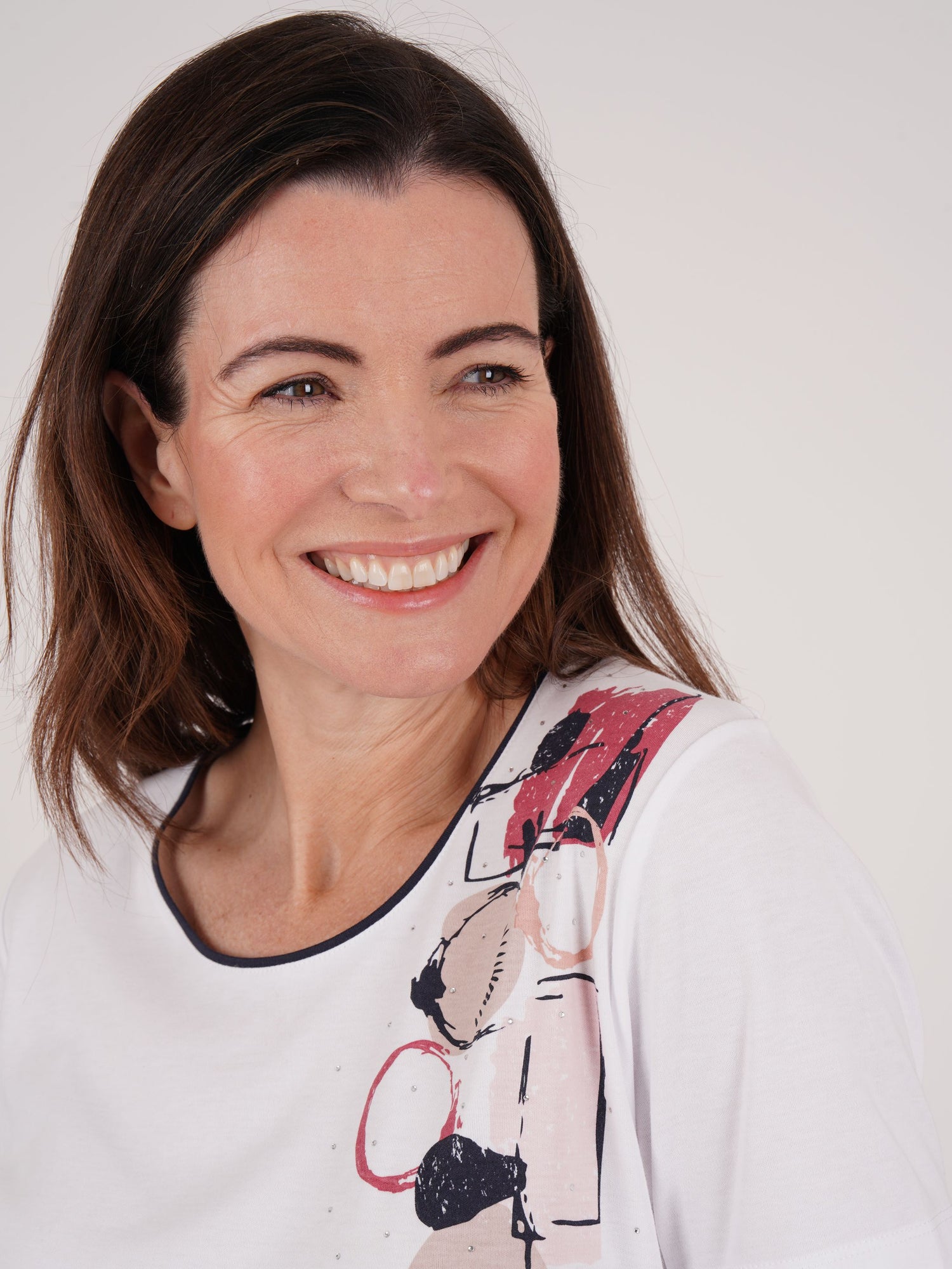 A true wearable work of art, this top features a striking abstract cubist-inspired print on the front, adding a bold and modern touch to any outfit. Designed with a contrast-tipped round neckline and short sleeves, it is crafted from a soft poly-cotton jersey for all-day comfort. A stylish twist on the classic T-shirt look!