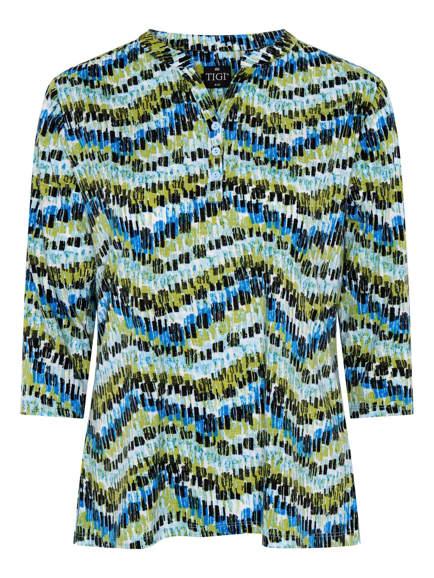 TIGI 18/20 Green Abstract Notch Neckline Top - T25-34A is backordered and will ship as soon as it is back in stock.