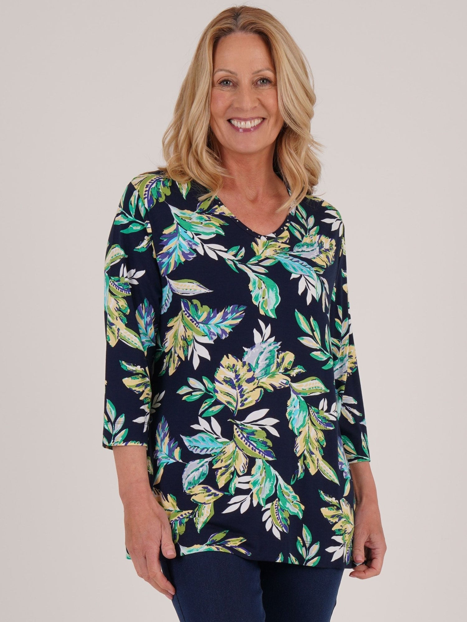 TIGI 8/10 Navy Rainforest All Over Print V Neck Top - T25-43A