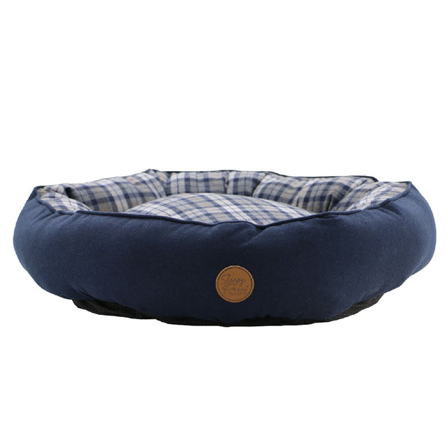 Ancol 70cm Blue & Grey Tartan Donut Dog Bed