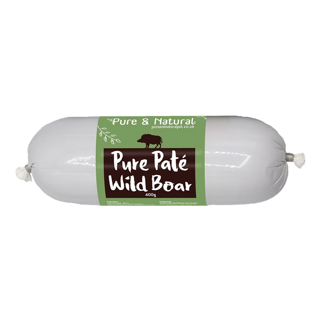 The Pure & Natural 80g Wild Boar Paté Sausage for Dogs is a premium, high-meat treat made with 100% fresh wild boar, providing a nutritious and gluten-free option for dogs of all breeds. Ideal as a reward, meal topper or training treat, this natural paté delivers rich flavour and essential nutrients.