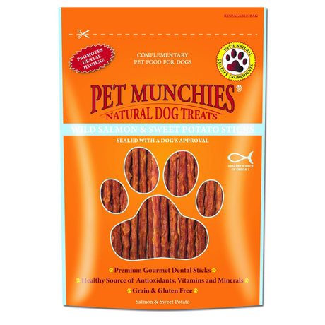 £1799Unit price /UnavailableVery low stock (1 unit)Pet Munchies 90g Dog Treats - Wild Salmon & Sweet Potato Dental Stick