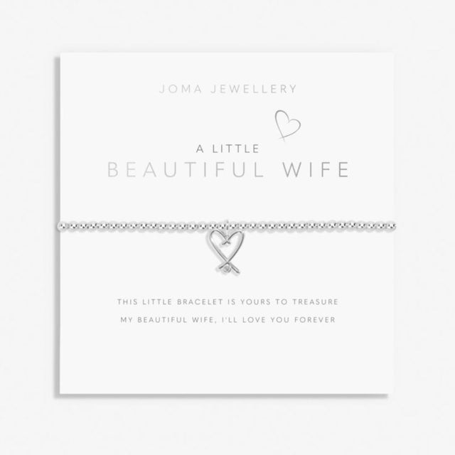 Express your everlasting love with the A Little 'Beautiful Wife' Bracelet by Joma Jewellery. Designed with their signature beaded style for a comfortable fit, this bracelet is adorned with a delicate silver-plated heart charm, symbolising your enduring affection. Presented on a sentiment-stamped card, it’s a thoughtful and romantic gift for your wife.
