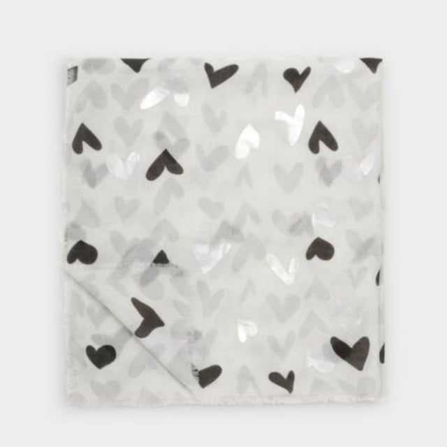 Katie Loxton Grey & Silver Abstract Heart Printed Foil Scarf – Lightweight Sparkle Accessory