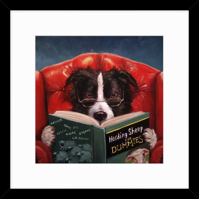 Add a touch of humor and charm to your home with 'Herding Sheep' by Lucia Heffernan. This delightful framed print features an adorable sheepdog intently reading a book titled "Herding Sheep for Dummies," bringing a playful and lighthearted feel to any space. ππ