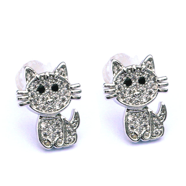 Black Ginger Diamante Cat Stud Earrings - Silver is backordered and will ship as soon as it is back in stock.