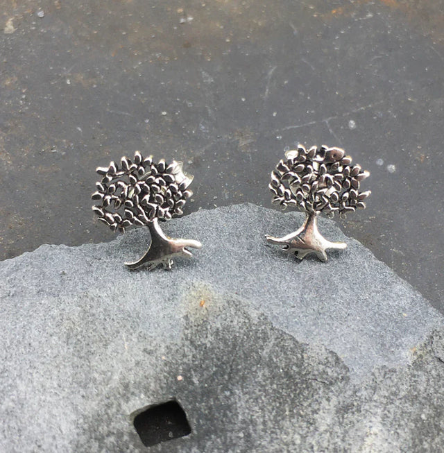 Blue Lily 10mm Silver Tree of Life Stud Earrings - S235B