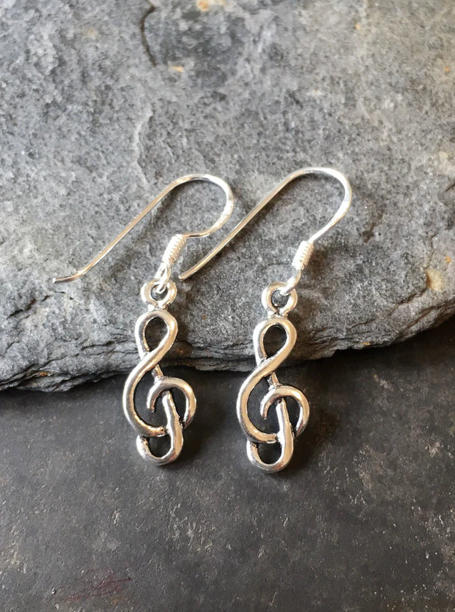 Blue Lily 18mm Silver Treble Clef Drop Earrings - SE313B
