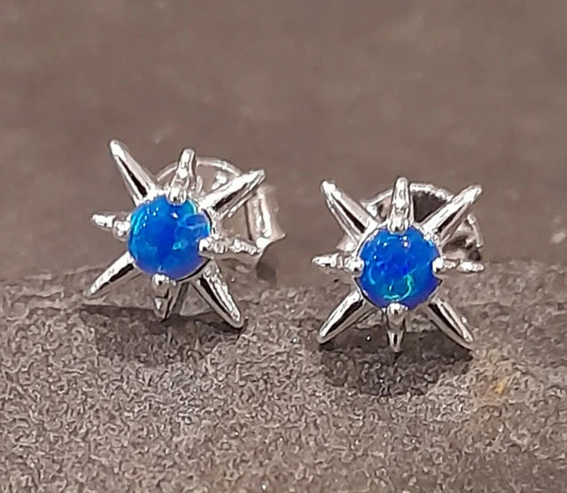 Blue Lily 5mm Syn Opal Silver Star Stud Earrings - SS696B