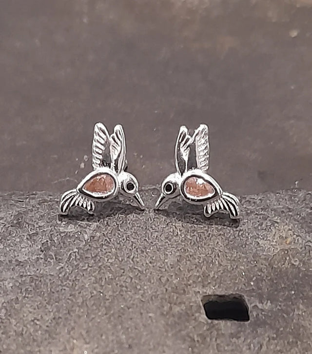 Blue Lily 9mm Pink Crystal Hummingbird Stud Earrings - SS700B