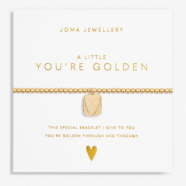 A Little 'You're Golden' Bracelet in Gold-Plating features a captivating stretch design and a precious Gold-Plated organic rectangle heart charm. Wrapped around one of the stylised cards and framed with a sweet sentiment, this piece is sure to make a standout gift and a wonderful addition to your loved one's Collection.