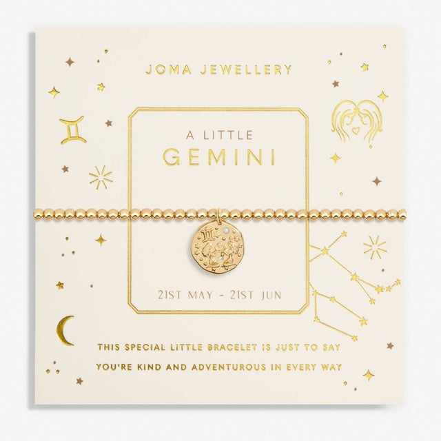 Get ready to make your loved one's wrist stack shimmer this season with this gorgeous new-look Star Sign A Little Bracelets. Threaded with Gold-Plated beads, crowned with a Gold-Plated disc, dotted with the Gemini Star Sign in Cubic Zirconia crystals, and wrapped around a pretty zodiac-printed card, the charming Star Sign A Little 'Gemini' Bracelet in Gold-Plated makes the most wonderful gift for celebrating a loved one's special day.