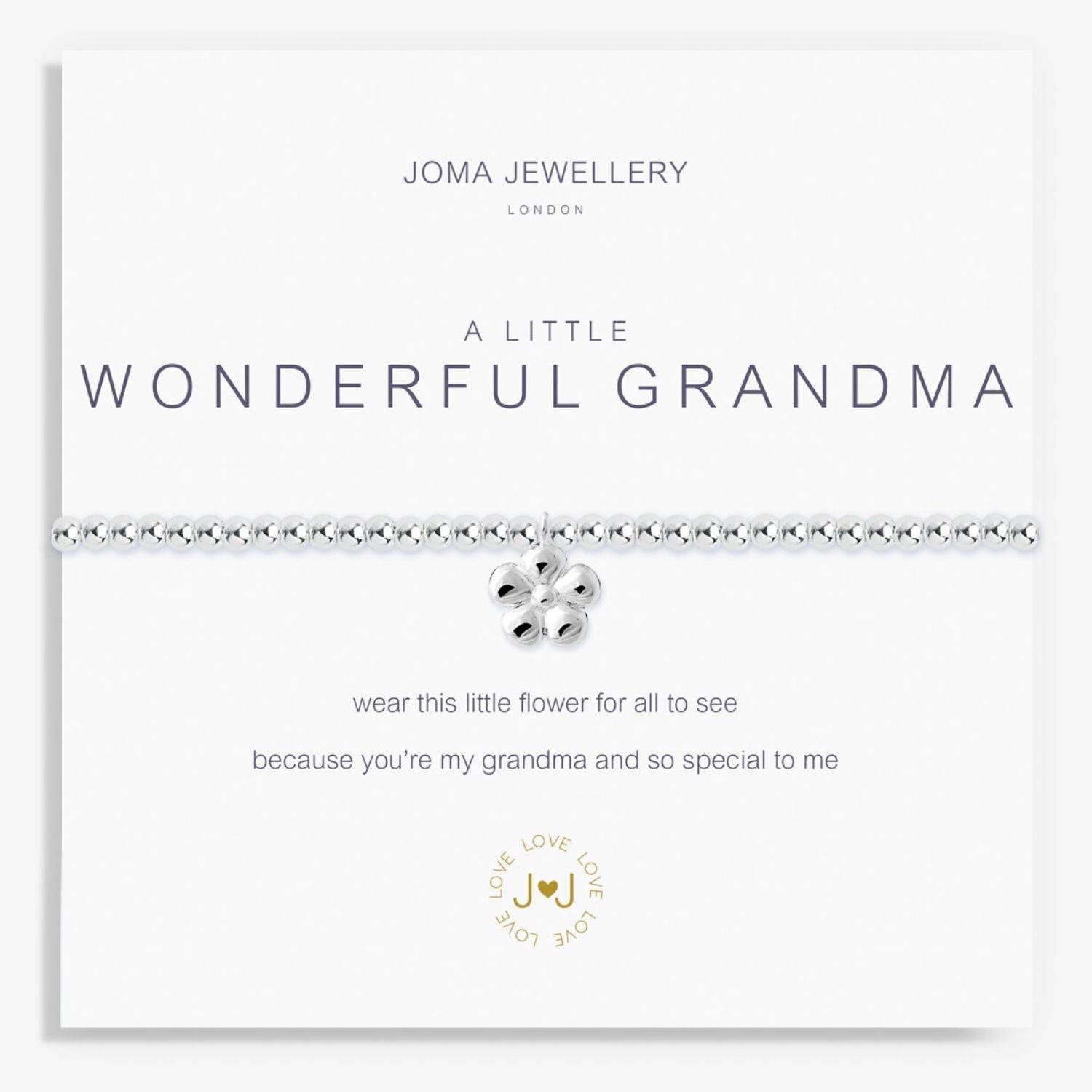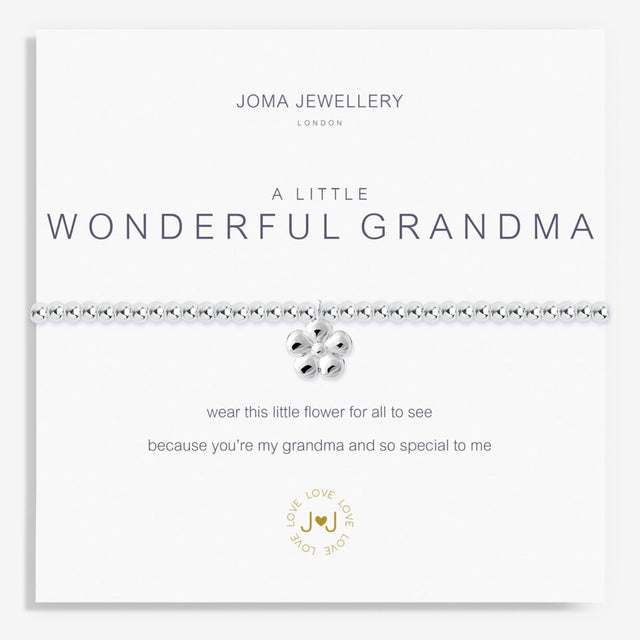 "Wear this little flower for all to see, because you’re my grandma and so special to me” From Mother’s Day gift to small token of appreciation, nothing says ‘you’re the best Grandma!’ like our A Little ‘Wonderful Grandma’ Bracelet. Featuring a super sweet silver-plated flower-shaped charm, this stretch bracelet is sure to fit every Grandma's wrist. Presented on a card which is stamped with the sentiment and adorable poem, this stackable style comes with a free Personalised Gift Bag that makes for the ultimate gifting moment.