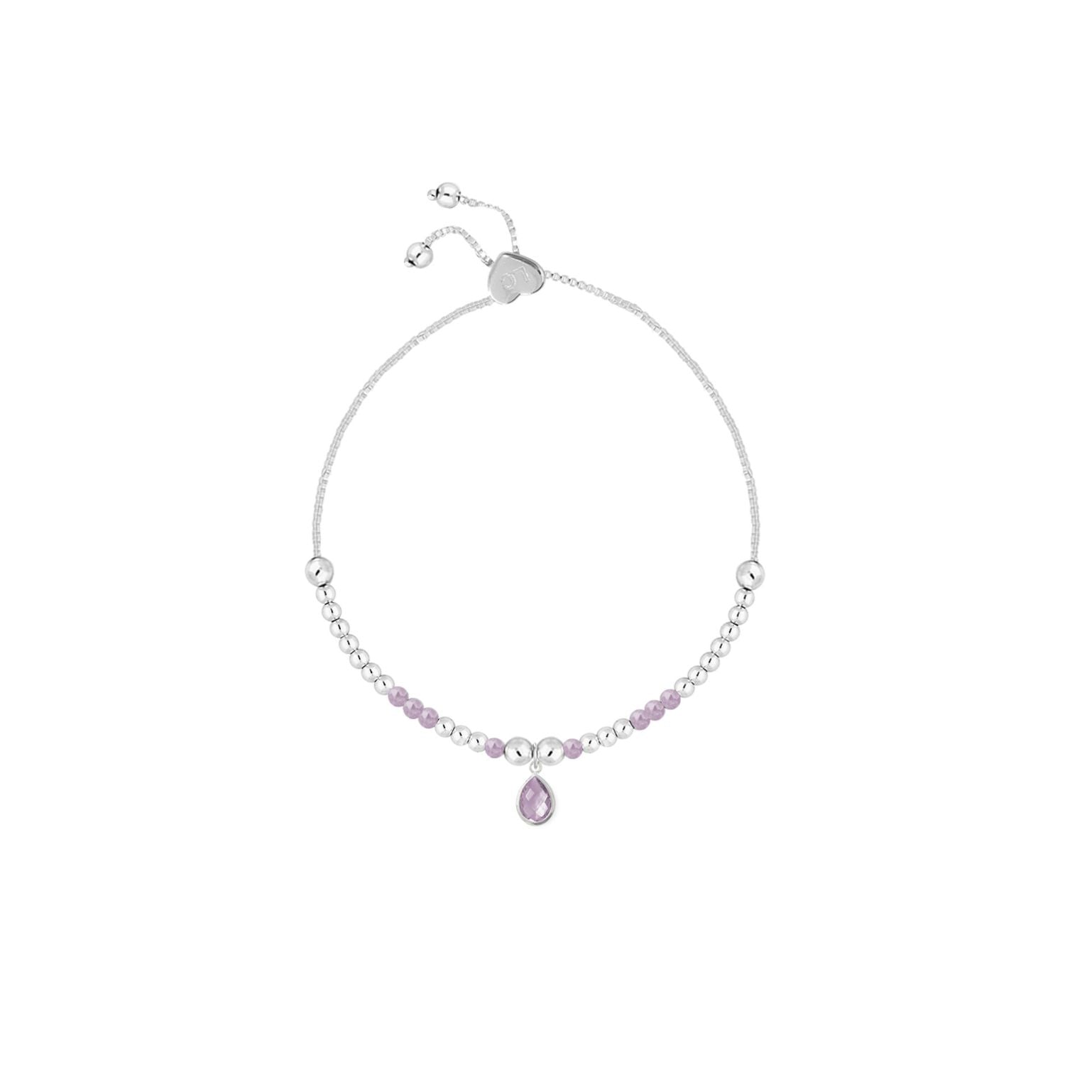 Celebrate February birthdays with this adjustable slider bracelet, featuring an elegant tear drop pendant adorned with special violet amethyst gemstones. Each piece in this collection is meticulously crafted to embody the rich and regal essence of amethyst, making it a perfect addition to any jewellery collection.